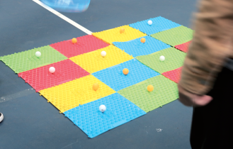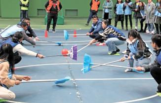 本屆運動會除了“觀山長跑”,還設(shè)立了“接力五子棋”、“山寨曲棍球”、“高蹺接力往返跑”、“乒乓球運送”等項目?!敖恿ξ遄悠濉本o張、“山寨曲棍球”激烈、“高蹺接力往返跑”熱鬧、“乒乓球運送”刺激。身處賽場,哪怕你是站在一旁的拉拉隊、裁判,也會融入這熱烈的氛圍當中,看著運動員們認真努力、奮力拼博的姿態(tài),你也會動容。有人臉上掛著不輸給專業(yè)運動員的認真神情,有人緊張得攥緊了一對小拳頭,有人聲嘶力竭的為運動員加油,有人為順利抵達終點的隊員歡呼雀躍……
